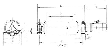 WD型外裝式電動(dòng)滾筒是二級(jí)齒輪,減速機(jī)構(gòu)置于筒形外殼內(nèi),外接立式電動(dòng)機(jī),用于帶式輸送機(jī)的一種新型驅(qū)動(dòng)裝置,大大改善了電動(dòng)機(jī)的散熱條件,適用范圍更大,且裝拆、維修方便,是各類帶式輸送機(jī)理想的驅(qū)動(dòng)裝置。WD型具有單向旋轉(zhuǎn),反向逆止功能。